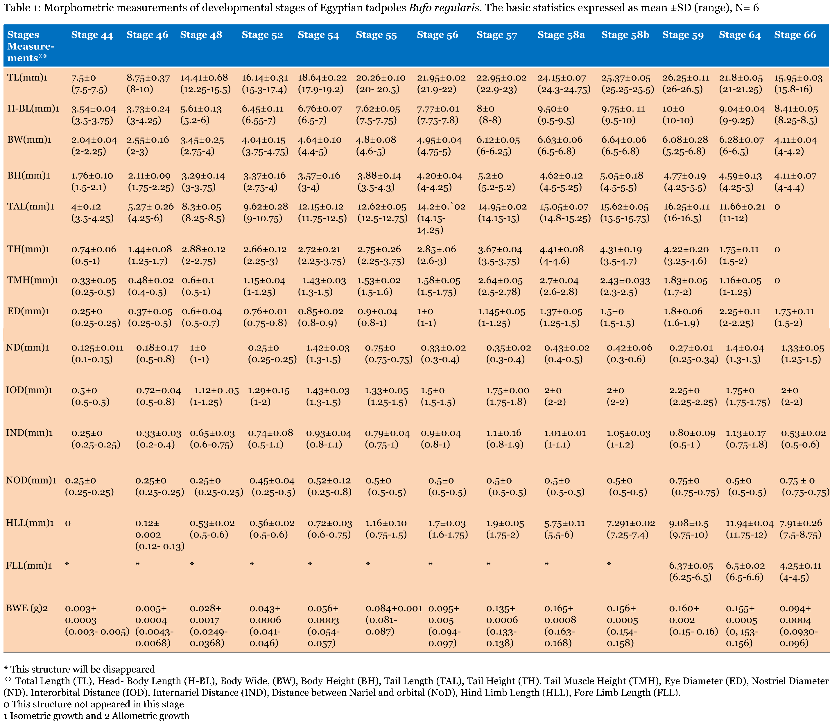 | Morphological and morphometric study on the early developmental stages of the Egyptian toad Bufo regularies Reuss | ||||||